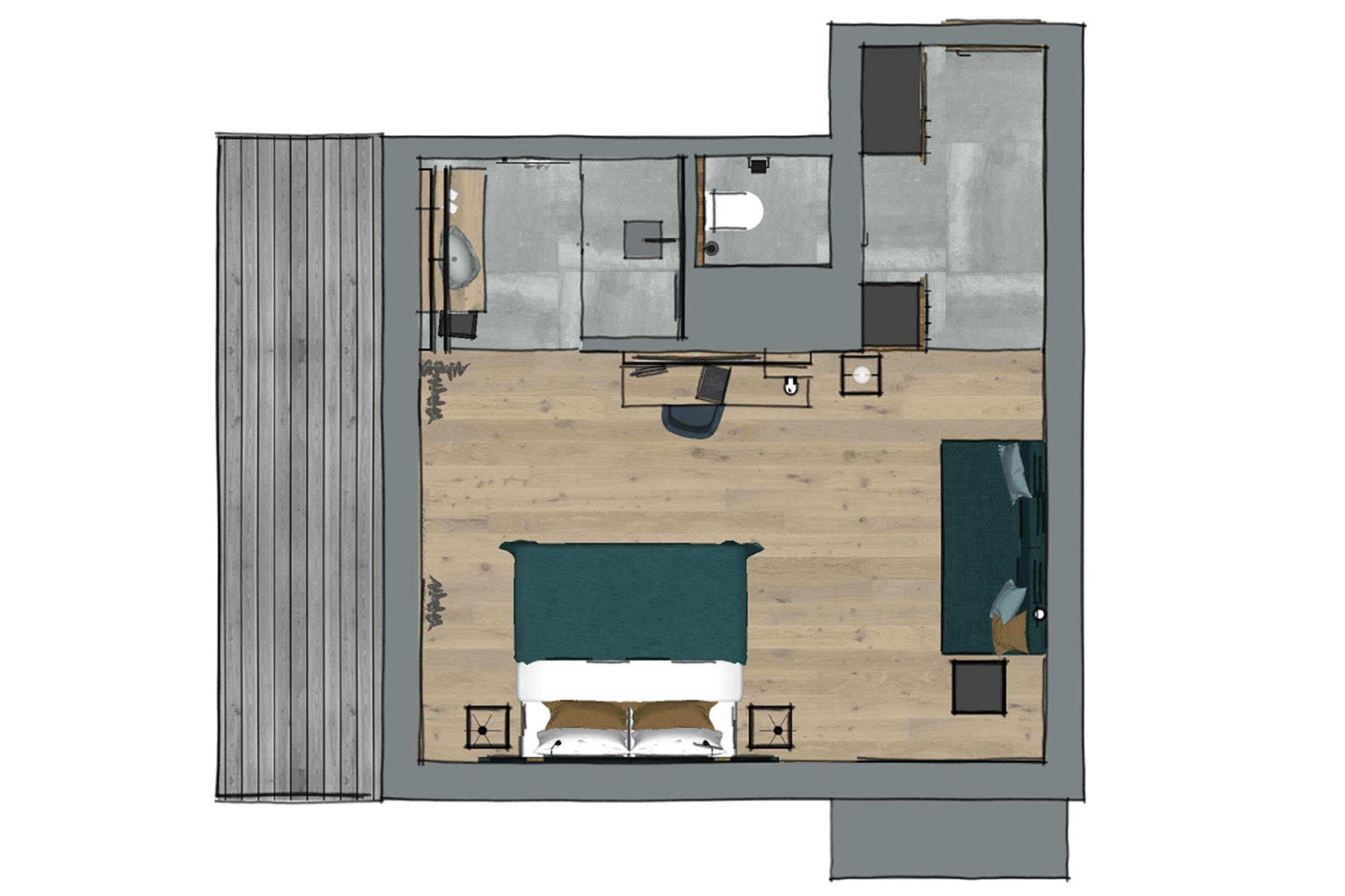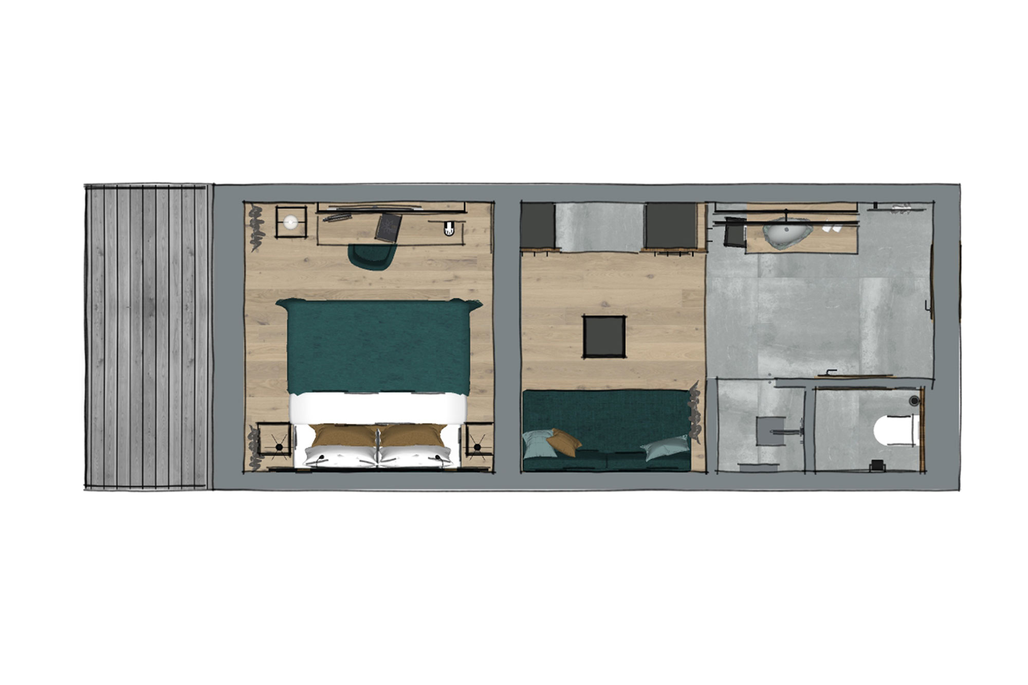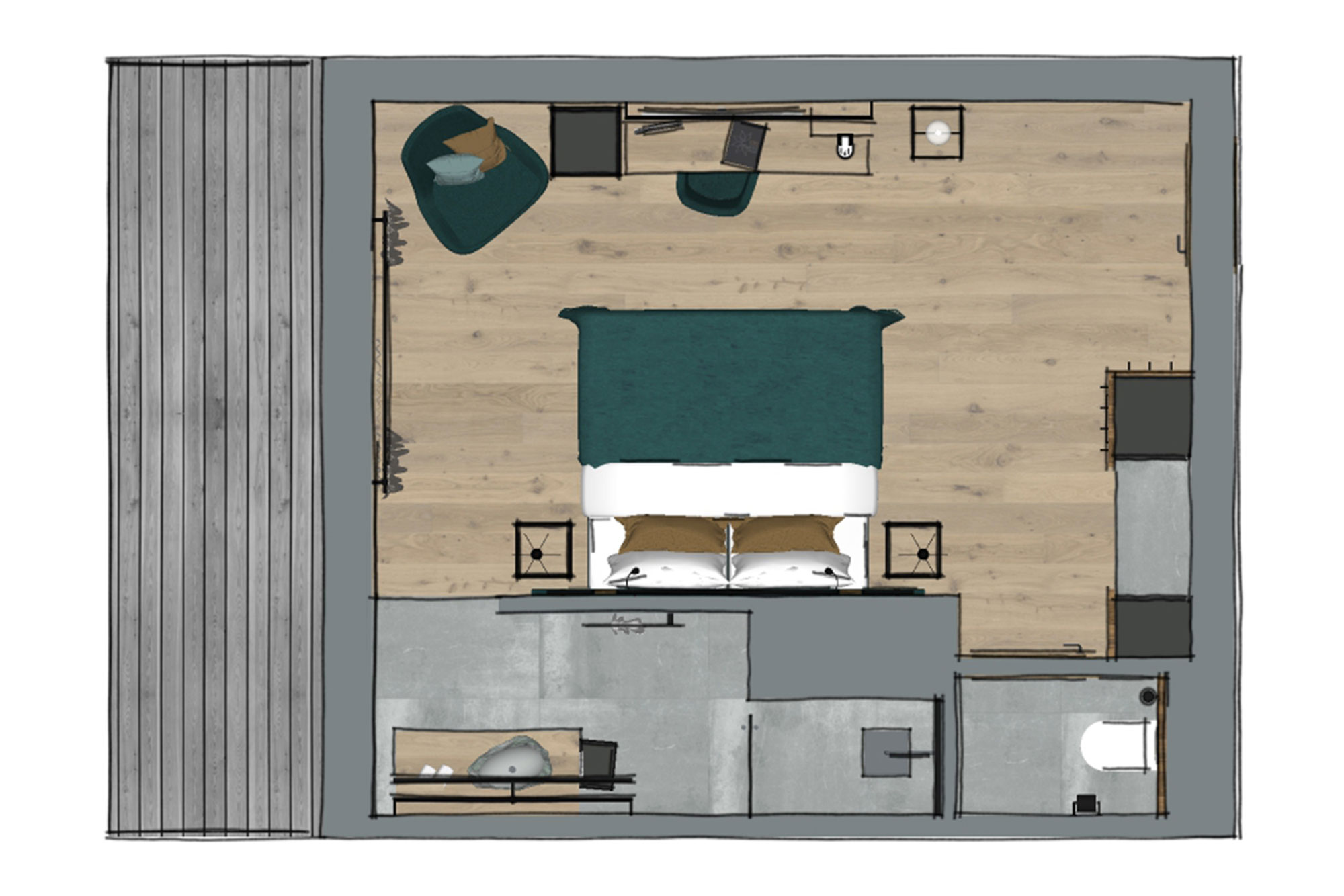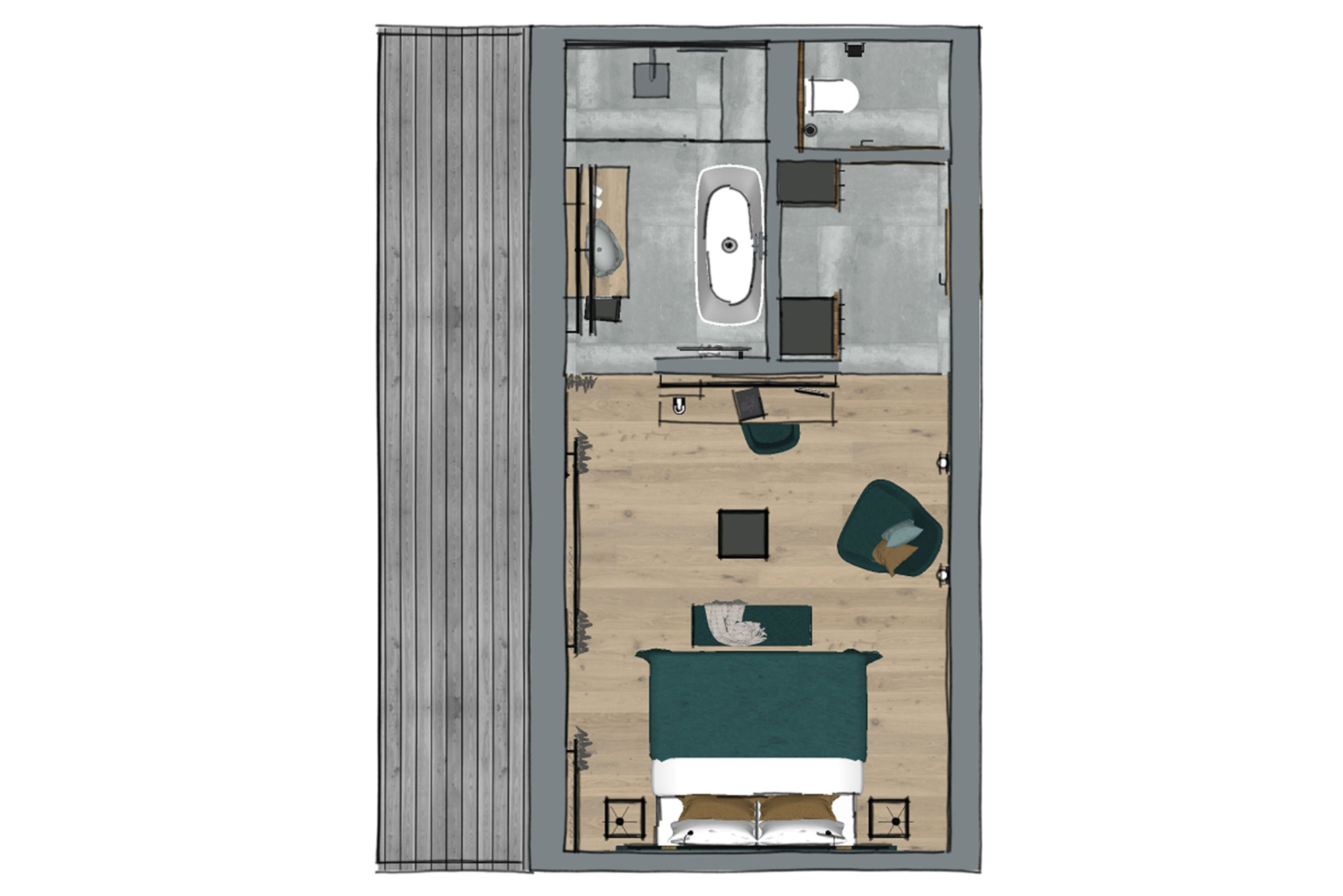 Das Doppelzimmer EDELWEISS ist mit einer Größe von 26,5 – 35 m² großzügig dimensioniert. Das angenehme Raumklima wird durch die Auswahl hochwertigster Materialen geschaffen. Holz und Naturstoffe erzeugen in Kombination mit funktionellem Design eine besondere Wohlfühlatmosphäre. Zur Einrichtung des Zimmers gehören ein Doppelbett, Telefon, Flat-TV, Safe und ein Balkon mit Blick auf das einzigartige Bergpanorama von Hinterglemm. Offenes Badezimmer mit wahlweise Bad oder Dusche, WC, Föhn.