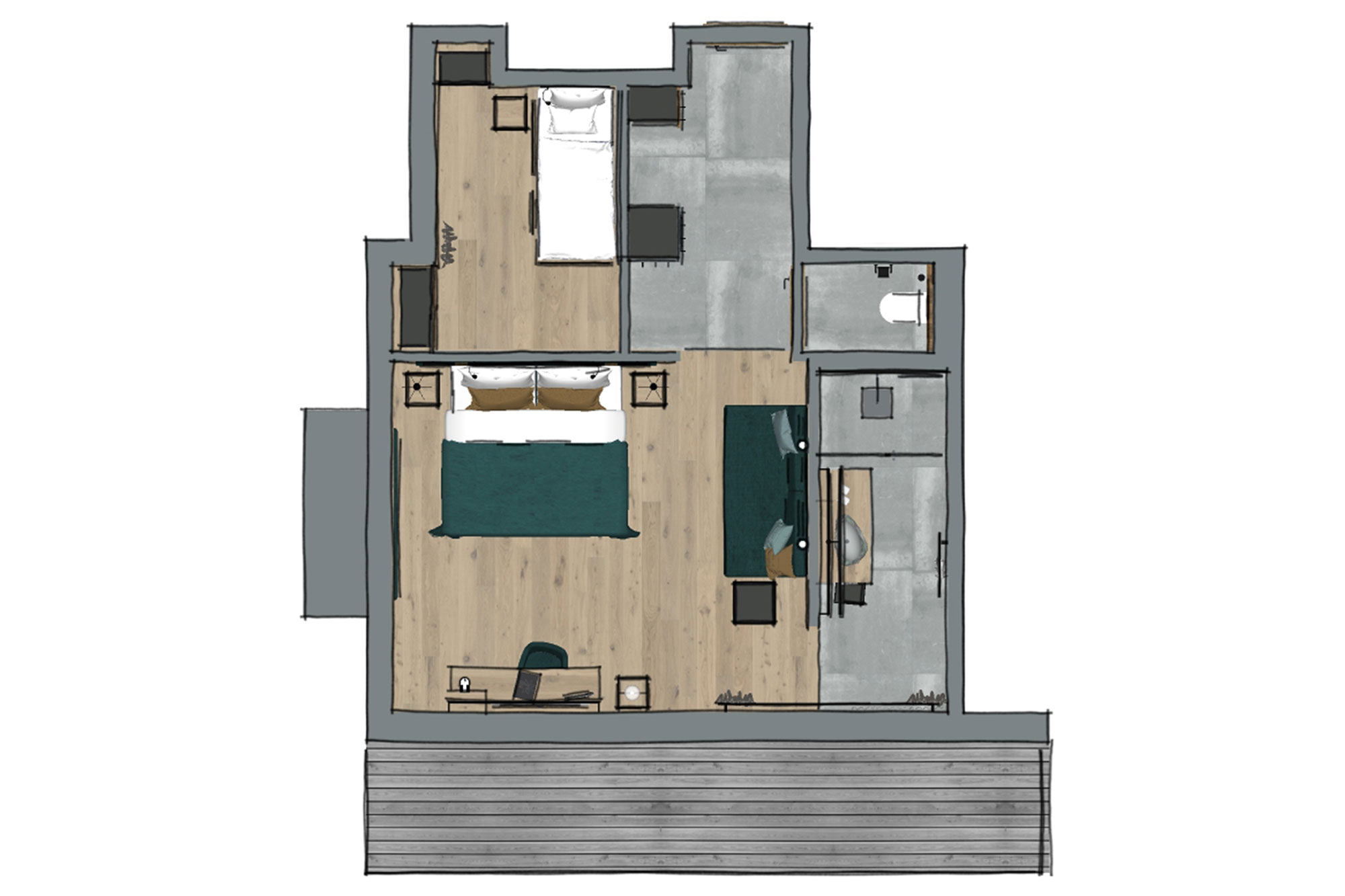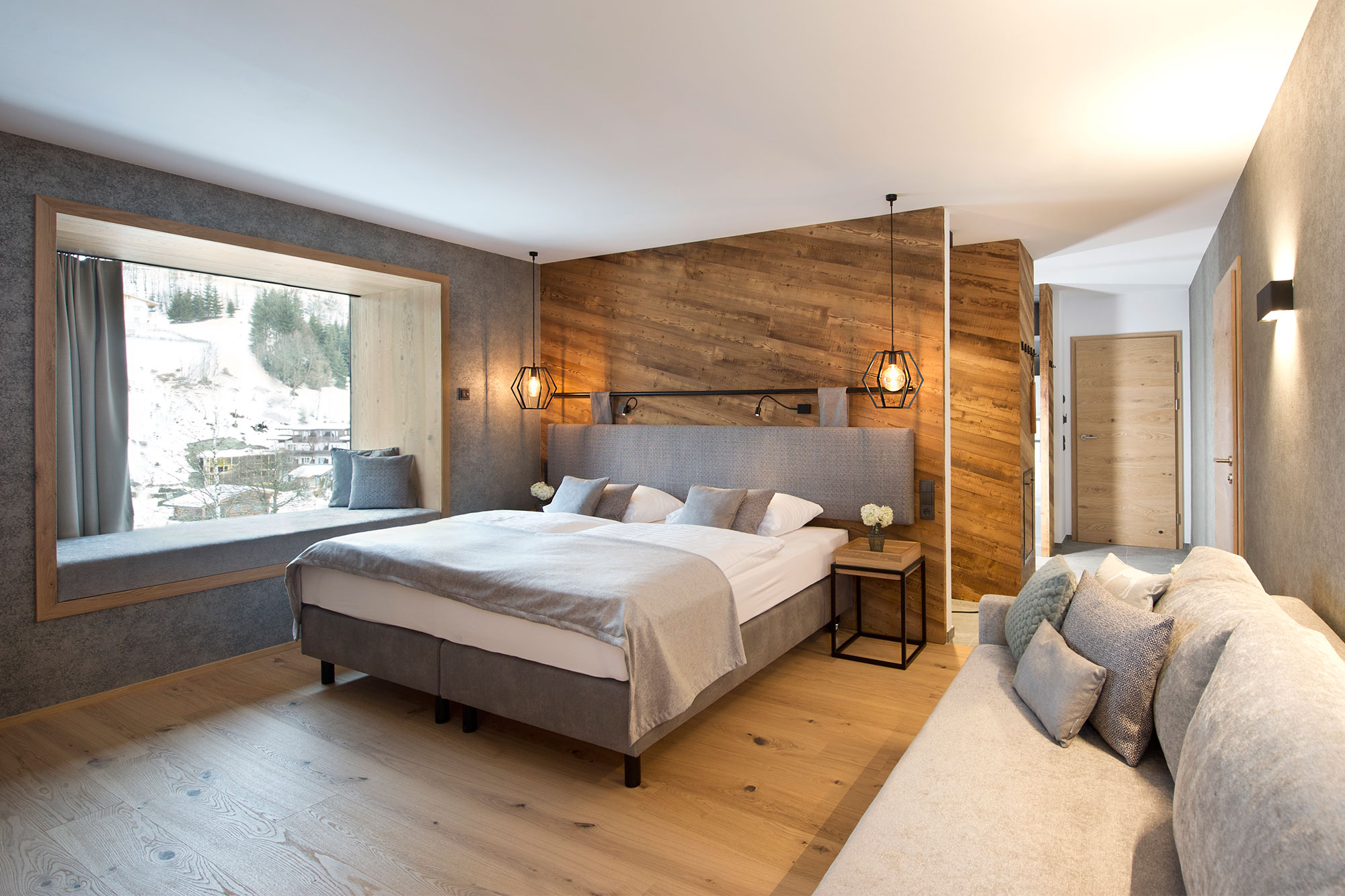 Wenn Eltern mit ihren Kindern Urlaub machen, dann brauchen sie vor allem Platz und Funktionalität. Und genau diese 2 Aspekte sind im EDELWEISS Family vereint. Das EDELWEISS Family bietet teilweise mit zwei voneinander separierten Schlafbereichen teilweise in einem Raum (Doppelbett im Elternbereich, modernes Stockbett für die Kinder) sowohl Eltern als auch Kindern die hin und wieder notwendige Rückzugsmöglichkeit. Eine gemütliche Leseecke, der traumhafte Balkon mit Blick auf Hinterglemms Bergwelt und ein modern gestaltetes Badezimmer ermöglichen Ihren Wohlfühlurlaub in Salzburgs herrlichen Bergen.
