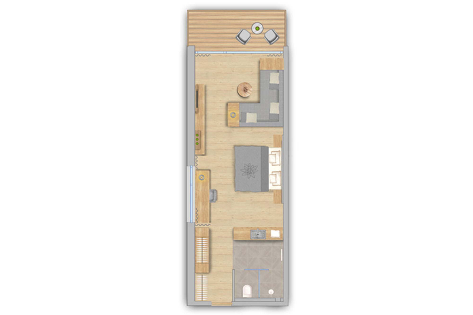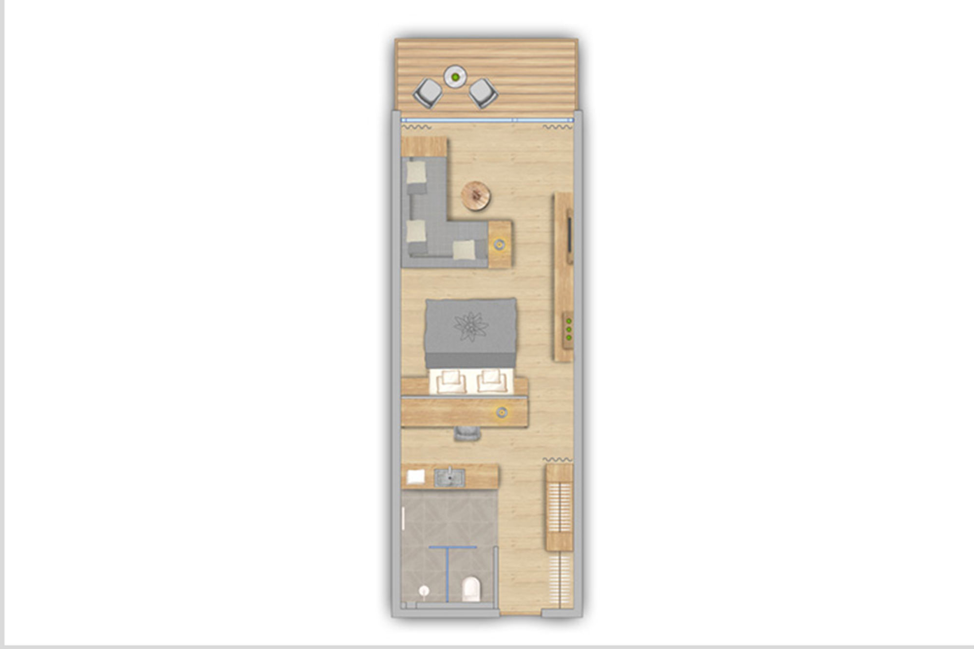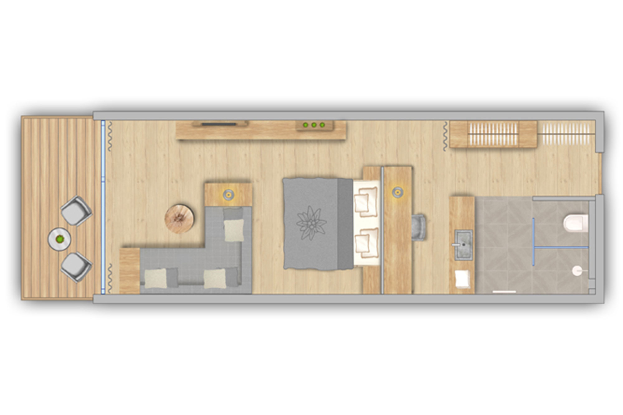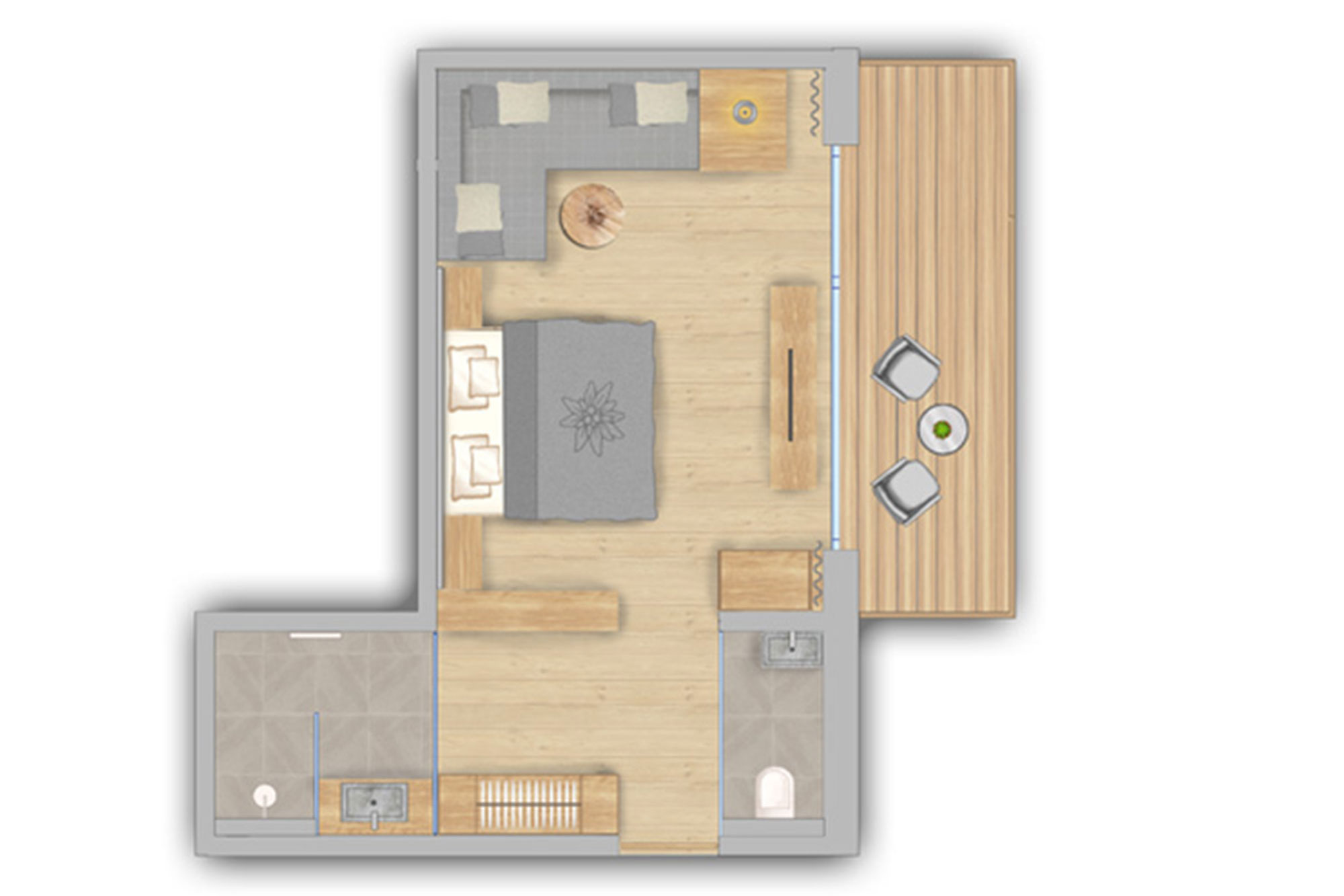 Die "Junior Chalet Suite" im Hotel EDELWEISS in Saalbach-Hinterglemm ist mit einer Größe von 40 m² großzügig gestaltet. Durch die Verwendung von viel Holz und Naturstoffen wurde eine besondere Wohlfühlatmosphäre geschaffen. Die Suite besitzt zudem eine Wohnecke, ein Doppelbett, Telefon, Flat-TV, Safe und einen Balkon mit Blick auf ein einzigartiges Bergpanorama. Offenes Badezimmer mit Dusche, WC, Föhn.